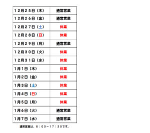 弊社では下記期間を年末年始休業とさせていただきます
