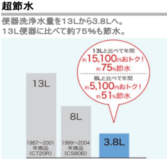 1回の洗浄水量が、3.8Lと30年前の便器と比べると