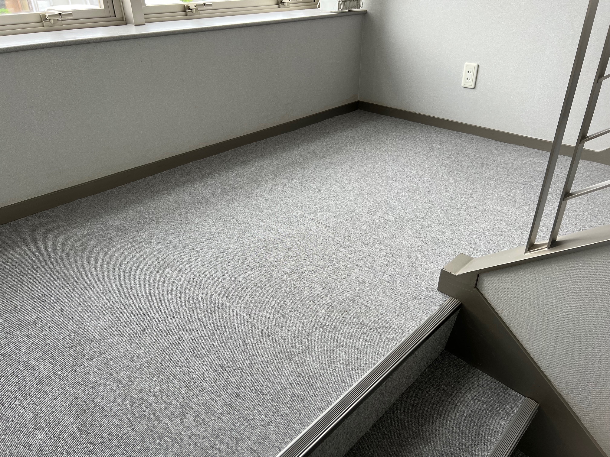 社屋の応接室と階段のタイルカーペット貼替、会議室のクロス貼替を